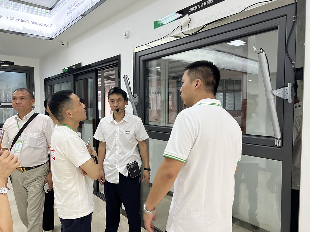 緊接著,專家代表團(tuán)參觀了公司產(chǎn)品展廳,了解了亞爾五金產(chǎn)品的最新研發(fā)成果及市場(chǎng)前景,一同感受了“亞爾”系列產(chǎn)品在建筑門(mén)窗實(shí)際應(yīng)用中的門(mén)窗微通風(fēng)、內(nèi)平開(kāi)下懸、防誤操作、同一扇窗的多種啟閉等功能。并對(duì)亞爾五金產(chǎn)品高性能特性及高顏值外觀和個(gè)性化的定制服務(wù)給予了高度贊揚(yáng),并提出了一系列獨(dú)到有建設(shè)性的意見(jiàn)。
