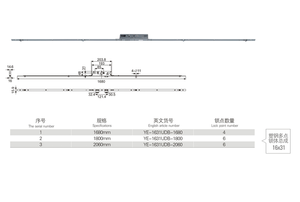 Plastic Steel Multi-point Lock Assembly 16*31