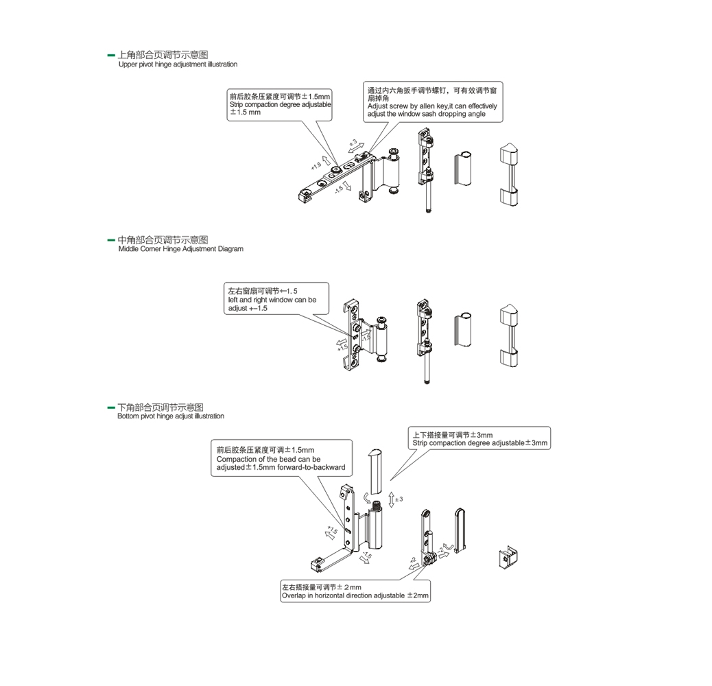 Corner Hinge Adjustment Diagram