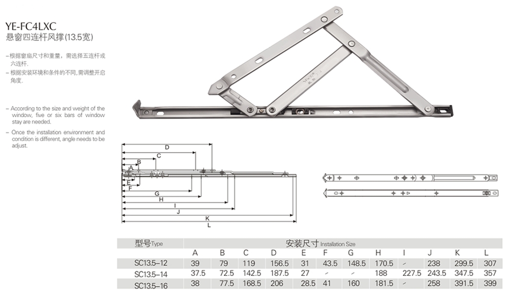懸窗四連桿風撐(13.5寬)