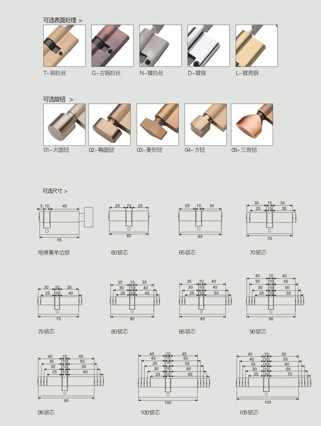 可選表面處理及尺寸