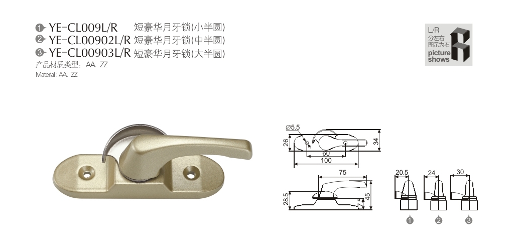 短豪華月牙鎖